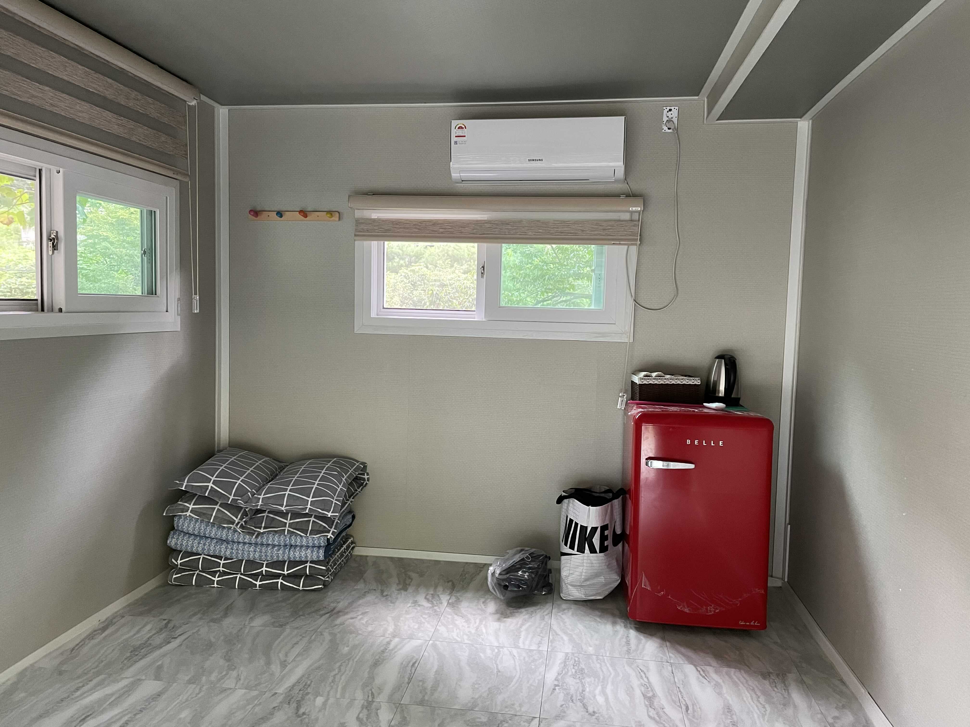 안에도 꽤 컸어요! 4명 정도 충분히 자고도 남을 정도 였고, 특히 좋았던건 에어컨이 있어서 글램핑(텐트) 안하고 이 방을 했거든요!